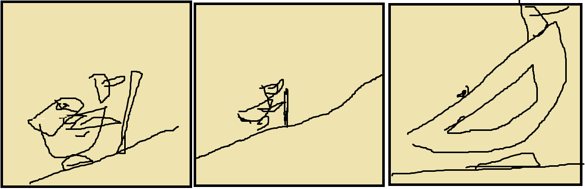 Shock is a scale of extremes. An extreme joke would be something like, “A man walks into a bar. The bartender blows him up with a bazooka.”2 The action is extreme, the choice of the word “bazooka” is extreme. Picture me screaming this joke in walmart. Also extreme. And subversive. Some jokes are funny by sheer boisterousness, nothing to do with the content. Jokes that are mostly shock tend to be distasteful in polite company.