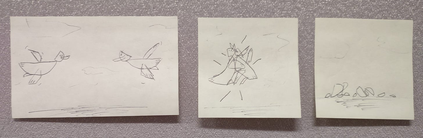 The toddler, playing with a toy turkey he found on thanksgiving: “Quack Quack Quack”