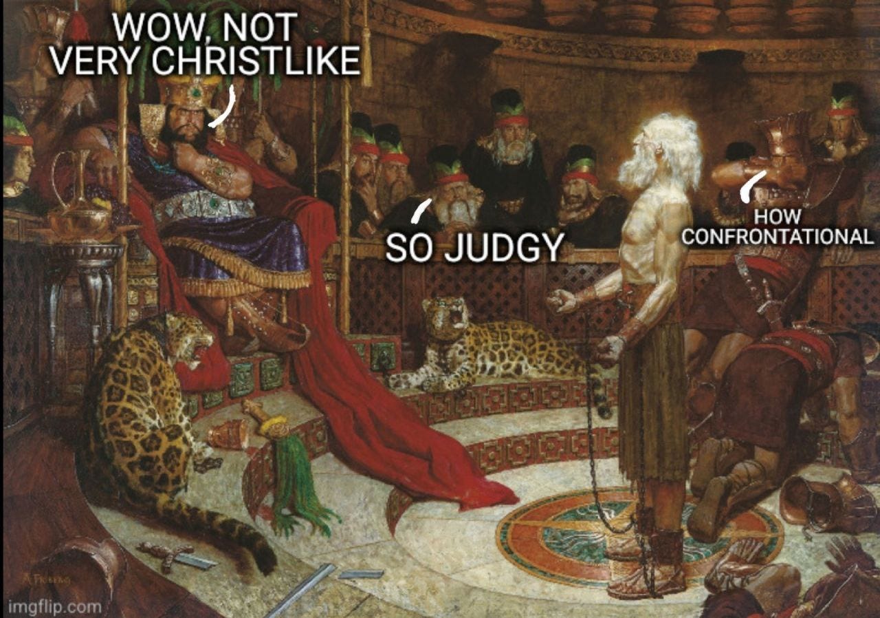 There’s a difference, semantically, in how the word “judgement” can be used. One usage is closer to “evaluate”, one is closer to “judge” as in the legal position with the powdered wig, one is closer to “jury”, and one is closer to “executioner”. To say sin is bad, that is a descriptive statement. To say X person is going to Hell, that is proscriptive. If you tease out these different definitions, then I think “judging righteous judgement” becomes a lot clearer. Does God want you to avoid evaluating good from evil? I insist that he does not. Adam fell that men might be, knowledge of Good and Evil is your heritage and you will not return to Eden by hiding your talents. Instead you must forge your way through, you must judge, you must evaluate good from evil, you must learn to be gods. You must learn this from God, of course. You aren’t a ruler, you’re just an heir. Whether you go prodigal is on you. But what you inherit is very likely to be related very closely to how well you’ve learned the lessons to keep that family business going. In general, the greater you learn discernment, the more you are capable of following Christ. And it is understandable to shrink from this, because if you make a bad judgement call you could theoretically hurt someone, yes. I don’t think that usually happens even on really bad judgement calls but obviously its a possibility. But I think you can look around yourself and see people everywhere in a state of judgement atrophy, and they aren’t really the better for it.