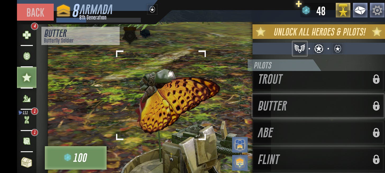 The premium currency gets you some upgrades faster or you can also watch ads, but the devs don’t seem very greedy, they seem like guys who think its funny to let you get a butterfly wearing an army hat to pilot your “war tortoise”